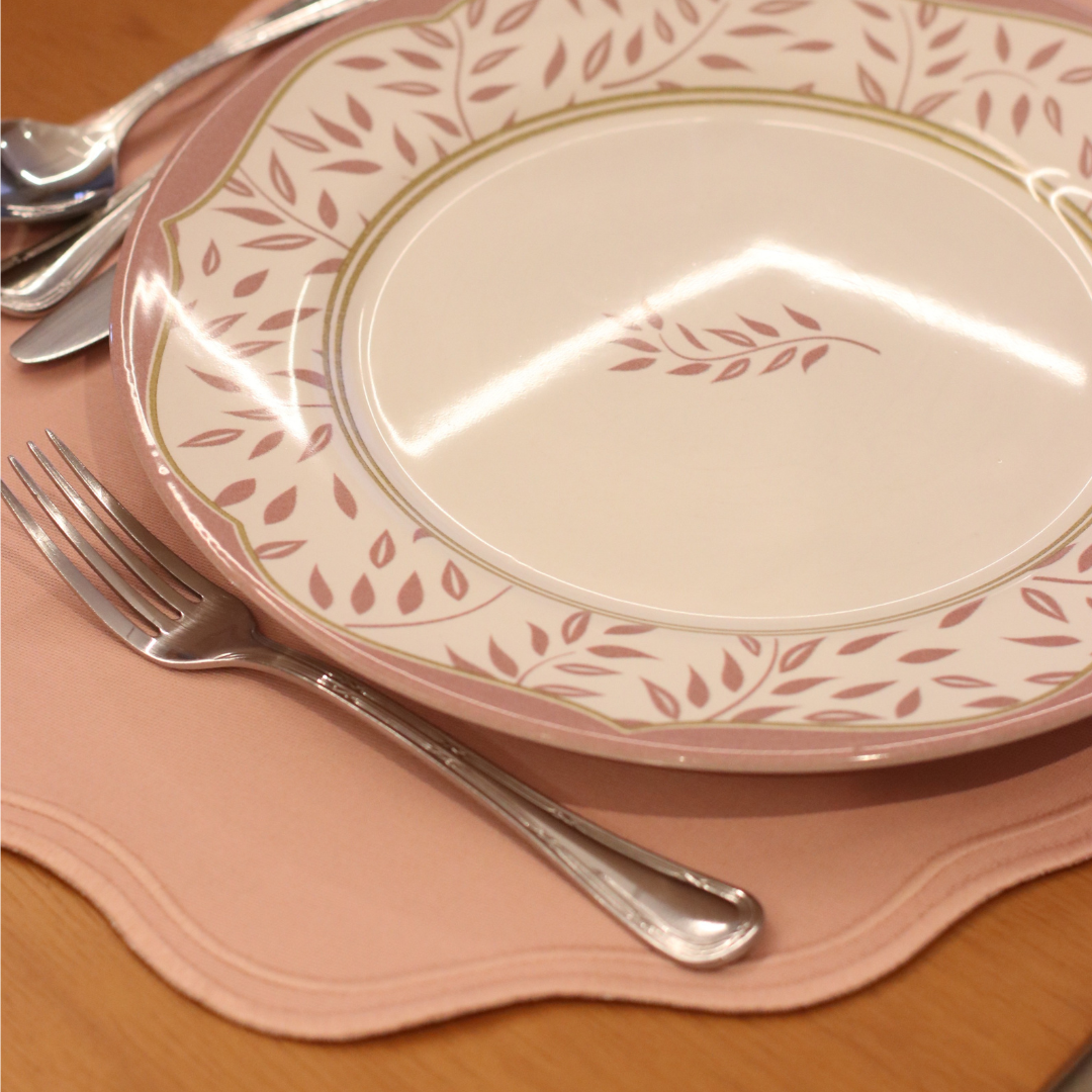 Lugar Americano bordado em tecido 100% algodão semi impermeável na cor rosa.